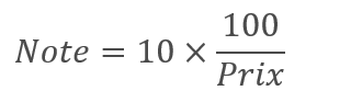 Elle consiste à mettre la note maximum (10/10 par exemple) pour le prix le plus bas proposé par les fournisseurs ayant répondu (100 € par exemple) :