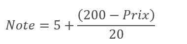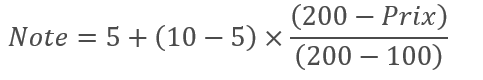 Ainsi pour un prix à 200 €, le fournisseur obtiendra la note de 5/10.